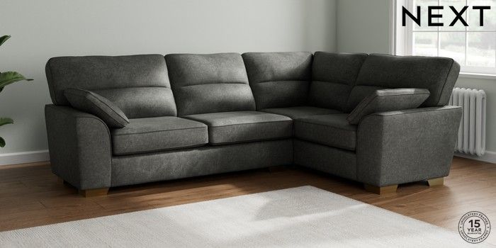 7.2.10 Stamford Highback Large Corner Sofa - Right Hand Plush Chenille Dark Grey Large Square Angle - Brushed Brass | Made Click here to use our website with more accessibility support, for example screen readers
