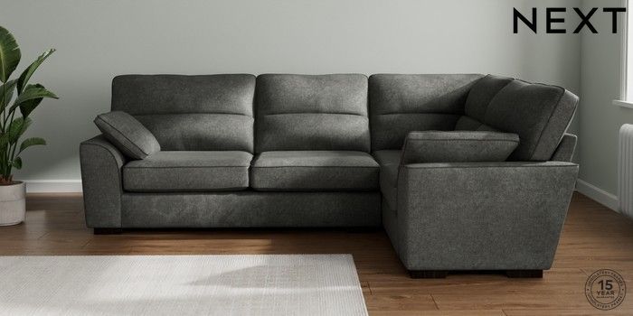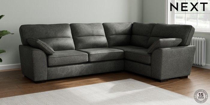 7.2.10 Stamford Highback Large Corner Sofa - Right Hand Plush Chenille Dark Grey Large Square Angle - Dark | Made Click here to use our website with more accessibility support, for example screen readers