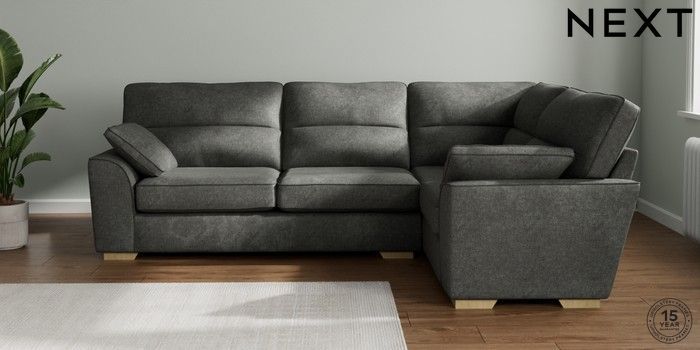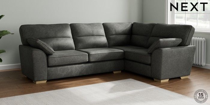 7.2.10 Stamford Highback Large Corner Sofa - Right Hand Plush Chenille Dark Grey Large Square Angle - Light | Made Click here to use our website with more accessibility support, for example screen readers