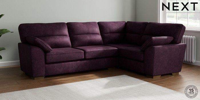 7.2.10 Stamford Highback Large Corner Sofa - Right Hand Plush Chenille Dark Plum Purple Large Square Angle - Mid | Made Click here to use our website with more accessibility support, for example screen readers