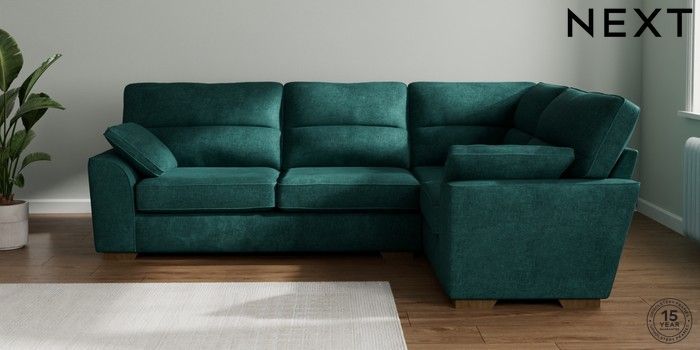 7.2.10 Stamford Highback Large Corner Sofa - Right Hand Plush Chenille Dark Teal Green Large Square Angle - Mid | Made Click here to use our website with more accessibility support, for example screen readers