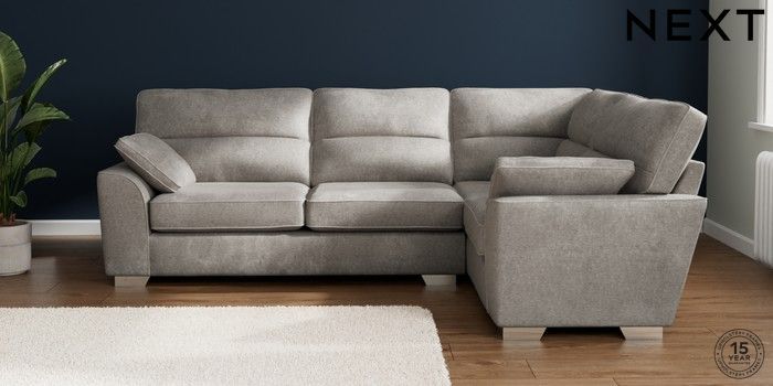 7.2.10 Stamford Highback Large Corner Sofa - Right Hand Plush Chenille Light Grey Large Square Angle - Chrome Metal | Made Click here to use our website with more accessibility support, for example screen readers