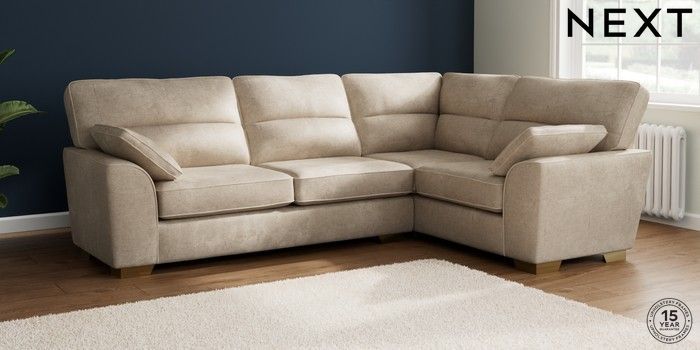 7.2.10 Stamford Highback Large Corner Sofa - Right Hand Plush Chenille Light Natural Large Square Angle - Brushed Brass | Made Click here to use our website with more accessibility support, for example screen readers