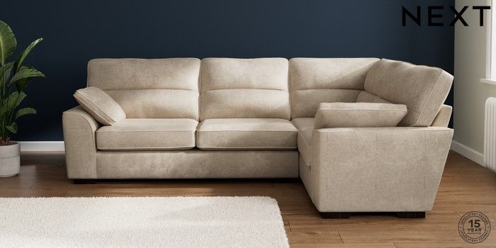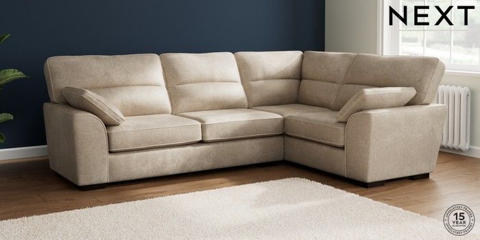 7.2.10 Stamford Highback Large Corner Sofa - Right Hand Plush Chenille Light Natural Large Square Angle - Dark | Made Click here to use our website with more accessibility support, for example screen readers