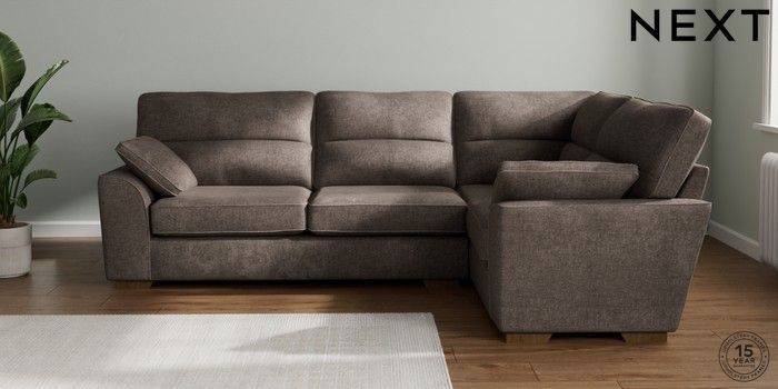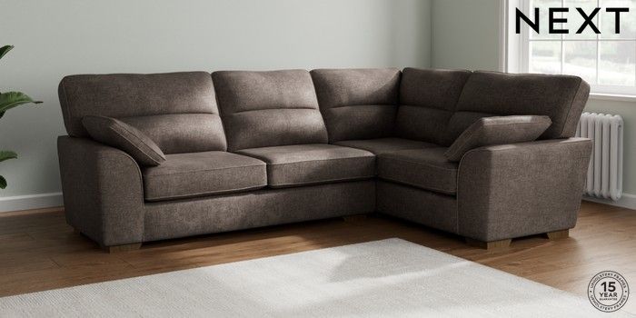 7.2.10 Stamford Highback Large Corner Sofa - Right Hand Plush Chenille Mink Brown Large Square Angle - Mid | Made Click here to use our website with more accessibility support, for example screen readers
