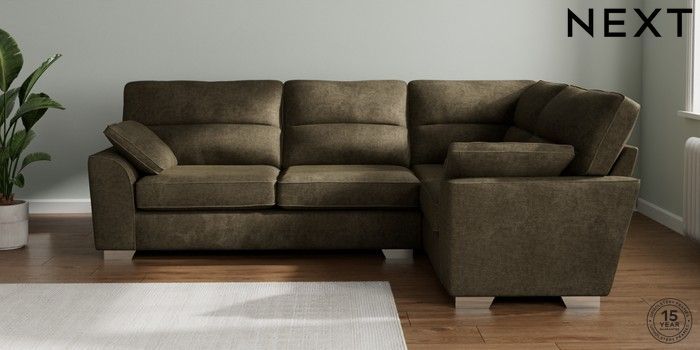 7.2.10 Stamford Highback Large Corner Sofa - Right Hand Plush Chenille Moss Green Large Square Angle - Chrome Metal | Made Click here to use our website with more accessibility support, for example screen readers