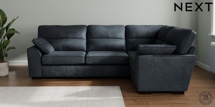 7.2.10 Stamford Highback Large Corner Sofa - Right Hand Plush Chenille Slate Blue Large Square Angle - Dark | Made Click here to use our website with more accessibility support, for example screen readers