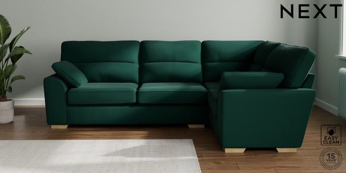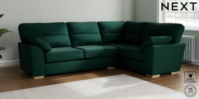 7.2.10 Stamford Highback Large Corner Sofa - Right Hand Plush Velvet Easy Clean Bottle Green Large Square Angle - Light | Made Click here to use our website with more accessibility support, for example screen readers