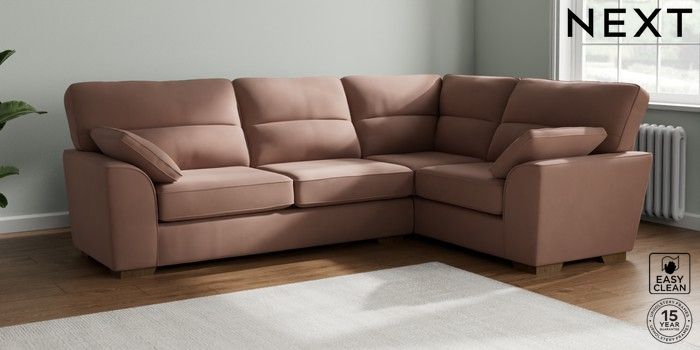 7.2.10 Stamford Highback Large Corner Sofa - Right Hand Plush Velvet Easy Clean Mid Natural Large Square Angle - Mid | Made Click here to use our website with more accessibility support, for example screen readers