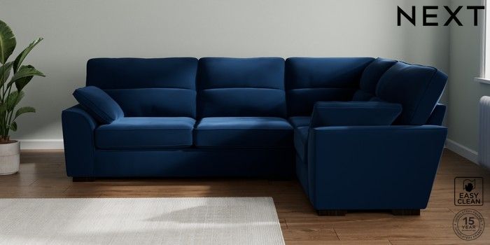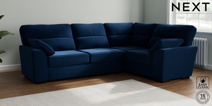 7.2.10 Stamford Highback Large Corner Sofa - Right Hand Plush Velvet Easy Clean Navy Blue Large Square Angle - Dark | Made Click here to use our website with more accessibility support, for example screen readers