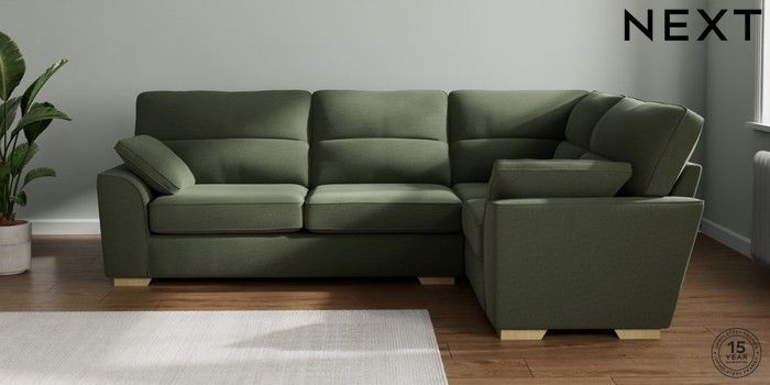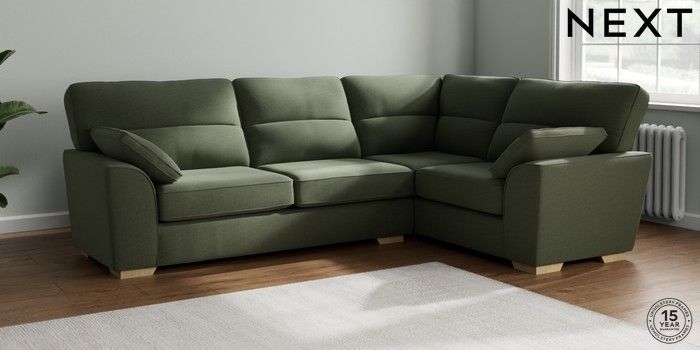 7.2.10 Stamford Highback Large Corner Sofa - Right Hand Relaxed Linen Look Dark Green Large Square Angle - Light | Made Click here to use our website with more accessibility support, for example screen readers