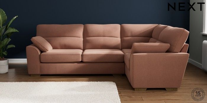 7.2.10 Stamford Highback Large Corner Sofa - Right Hand Relaxed Linen Look Light Rust Brown Large Square Angle - Mid | Made Click here to use our website with more accessibility support, for example screen readers