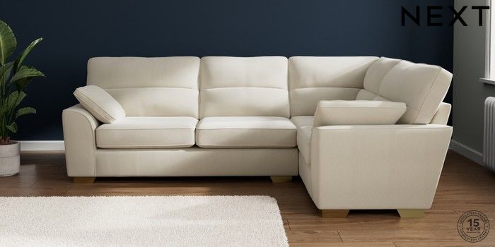 7.2.10 Stamford Highback Large Corner Sofa - Right Hand Relaxed Linen Look Oyster Large Square Angle - Brushed Brass | Made Click here to use our website with more accessibility support, for example screen readers