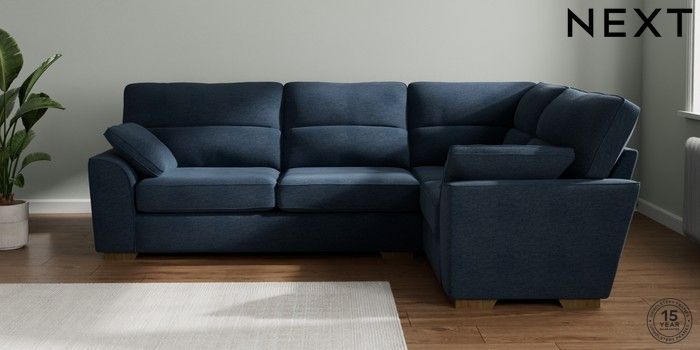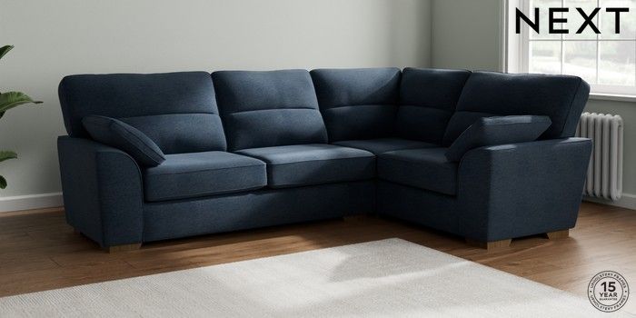 7.2.10 Stamford Highback Large Corner Sofa - Right Hand Ripple Chenille Dark Blue Large Square Angle - Mid | Made Click here to use our website with more accessibility support, for example screen readers