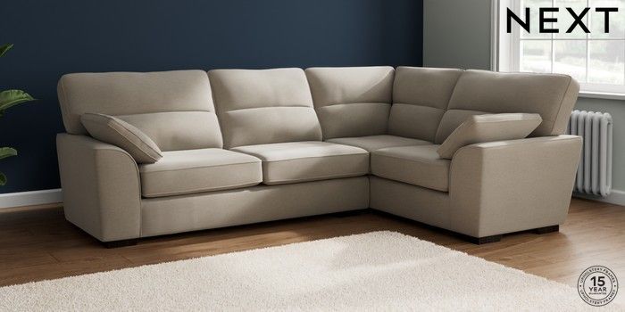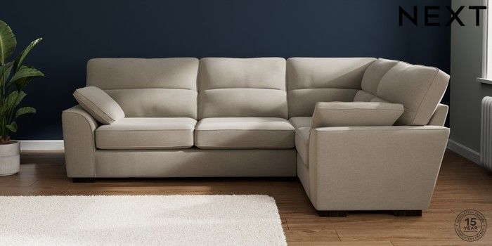 7.2.10 Stamford Highback Large Corner Sofa - Right Hand Ripple Chenille Light Natural Large Square Angle - Dark | Made Click here to use our website with more accessibility support, for example screen readers
