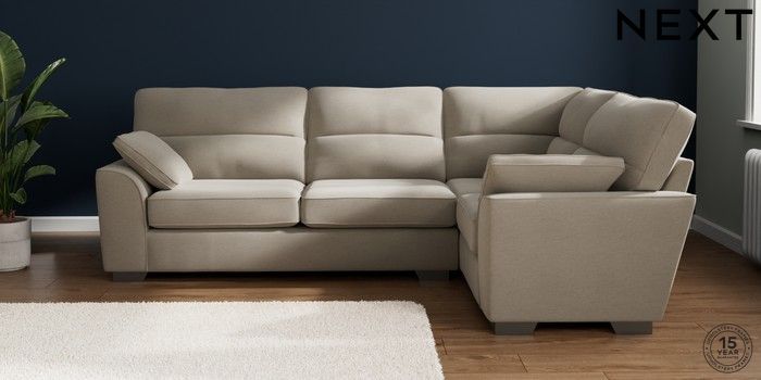7.2.10 Stamford Highback Large Corner Sofa - Right Hand Ripple Chenille Light Natural Large Square Angle - Gunmetal | Made Click here to use our website with more accessibility support, for example screen readers