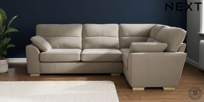 7.2.10 Stamford Highback Large Corner Sofa - Right Hand Ripple Chenille Light Natural Large Square Angle - Light | Made Click here to use our website with more accessibility support, for example screen readers