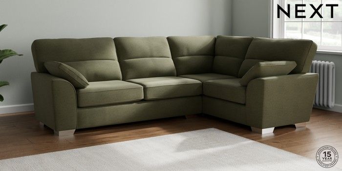 7.2.10 Stamford Highback Large Corner Sofa - Right Hand Ripple Chenille Mid Moss Green Large Square Angle - Chrome Metal | Made Click here to use our website with more accessibility support, for example screen readers