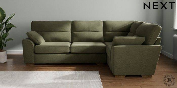 7.2.10 Stamford Highback Large Corner Sofa - Right Hand Ripple Chenille Mid Moss Green Large Square Angle - Mid | Made Click here to use our website with more accessibility support, for example screen readers