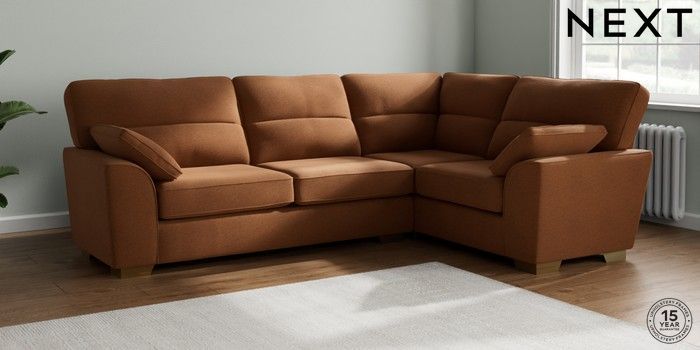 7.2.10 Stamford Highback Large Corner Sofa - Right Hand Ripple Chenille Mid Rust Brown Large Square Angle - Brushed Brass | Made Click here to use our website with more accessibility support, for example screen readers