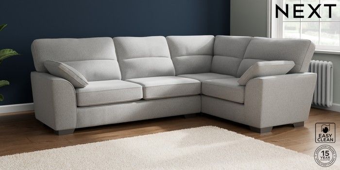 7.2.10 Stamford Highback Large Corner Sofa - Right Hand Tweedy Blend Easy Clean Light Silver Grey Large Square Angle - Gunmetal | Made Click here to use our website with more accessibility support, for example screen readers