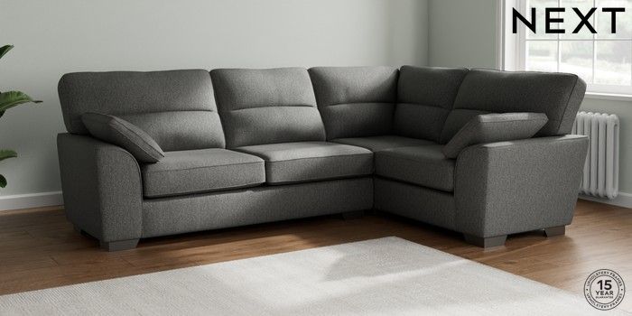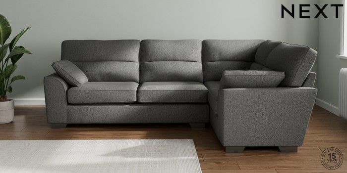 7.2.10 Stamford Highback Large Corner Sofa - Right Hand Tweedy Chenille Dark Grey Large Square Angle - Gunmetal | Made Click here to use our website with more accessibility support, for example screen readers