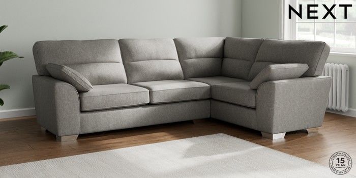 7.2.10 Stamford Highback Large Corner Sofa - Right Hand Tweedy Chenille Mid Grey Large Square Angle - Chrome Metal | Made Click here to use our website with more accessibility support, for example screen readers