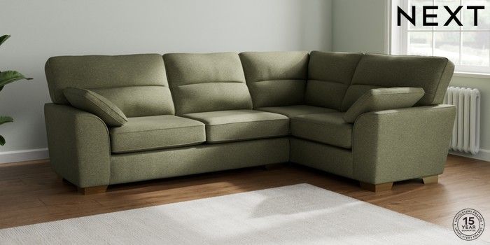 7.2.10 Stamford Highback Large Corner Sofa - Right Hand Tweedy Chenille Mid Moss Green Large Square Angle - Brushed Brass | Made Click here to use our website with more accessibility support, for example screen readers