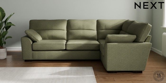 7.2.10 Stamford Highback Large Corner Sofa - Right Hand Tweedy Chenille Mid Moss Green Large Square Angle - Dark | Made Click here to use our website with more accessibility support, for example screen readers