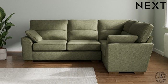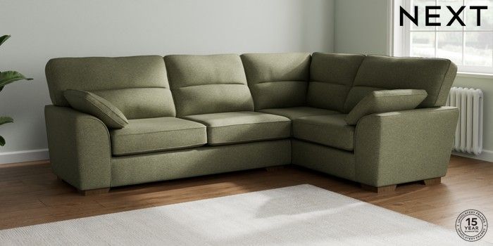7.2.10 Stamford Highback Large Corner Sofa - Right Hand Tweedy Chenille Mid Moss Green Large Square Angle - Mid | Made Click here to use our website with more accessibility support, for example screen readers