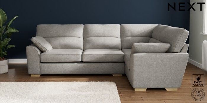 7.2.10 Stamford Highback Large Corner Sofa - Right Hand Woven Chenille Easy Clean Light Grey Large Square Angle - Light | Made Click here to use our website with more accessibility support, for example screen readers
