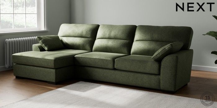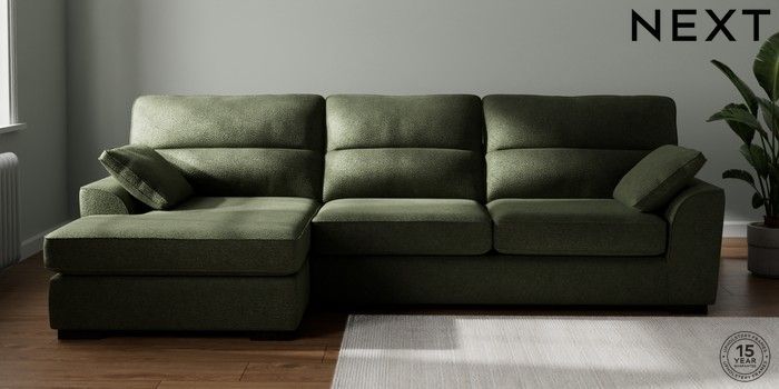7.2.10 Stamford Highback Large Sofa Chaise - Left Hand Boucle Chenille Dark Moss Green Large Square Angle - Dark | Made Click here to use our website with more accessibility support, for example screen readers