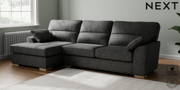 7.2.10 Stamford Highback Large Sofa Chaise - Left Hand Boucle Weave Easy Clean Charcoal Grey Large Square Angle - Light | Made Click here to use our website with more accessibility support, for example screen readers