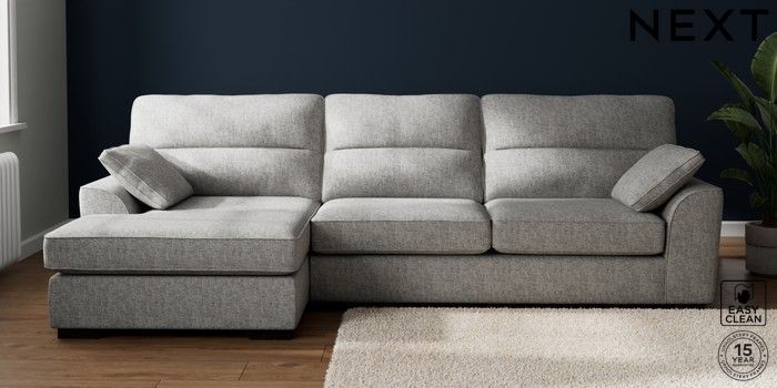 7.2.10 Stamford Highback Large Sofa Chaise - Left Hand Chunky Boucle Easy Clean Light Grey Large Square Angle - Dark | Made Click here to use our website with more accessibility support, for example screen readers