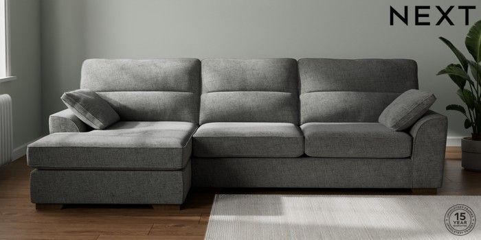 7.2.10 Stamford Highback Large Sofa Chaise - Left Hand Chunky Chenille Dark Grey Large Square Angle - Mid | Made Click here to use our website with more accessibility support, for example screen readers