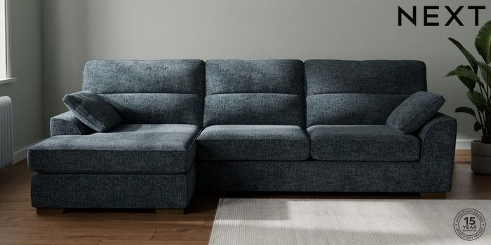 7.2.10 Stamford Highback Large Sofa Chaise - Left Hand Chunky Chenille Dark Navy Blue Large Square Angle - Mid | Made Click here to use our website with more accessibility support, for example screen readers