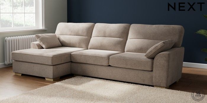 7.2.10 Stamford Highback Large Sofa Chaise - Left Hand Chunky Chenille Light Dove Large Square Angle - Light | Made Click here to use our website with more accessibility support, for example screen readers