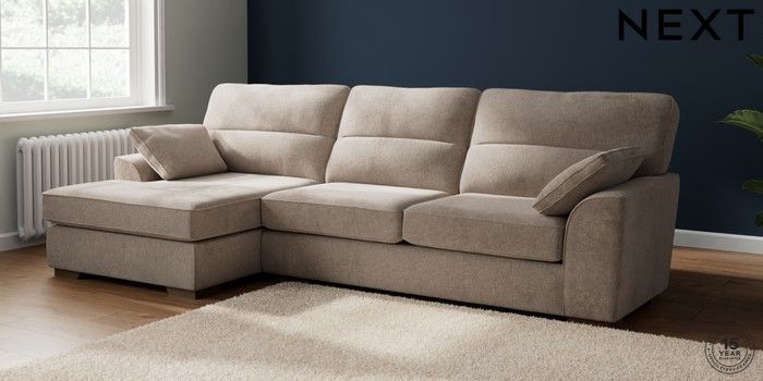 7.2.10 Stamford Highback Large Sofa Chaise - Left Hand Chunky Chenille Light Dove Large Square Angle - Mid | Made Click here to use our website with more accessibility support, for example screen readers