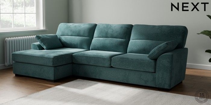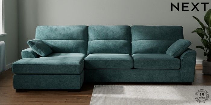 7.2.10 Stamford Highback Large Sofa Chaise - Left Hand Chunky Chenille Mid Teal Green Large Square Angle - Dark | Made Click here to use our website with more accessibility support, for example screen readers
