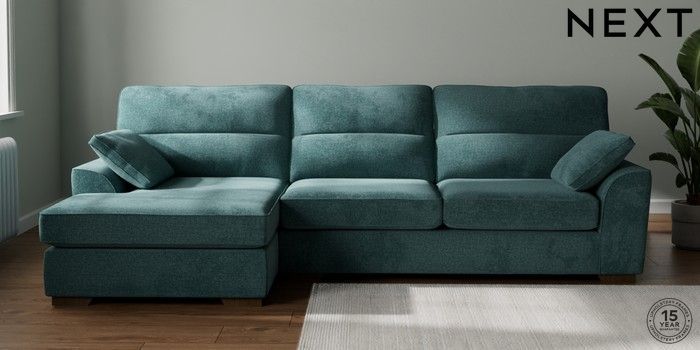 7.2.10 Stamford Highback Large Sofa Chaise - Left Hand Chunky Chenille Mid Teal Green Large Square Angle - Mid | Made Click here to use our website with more accessibility support, for example screen readers