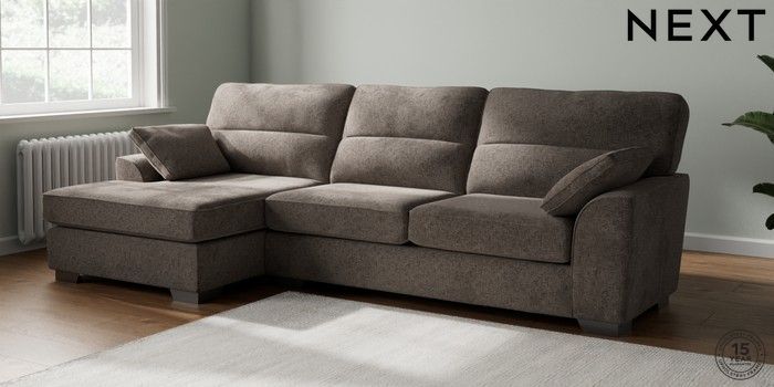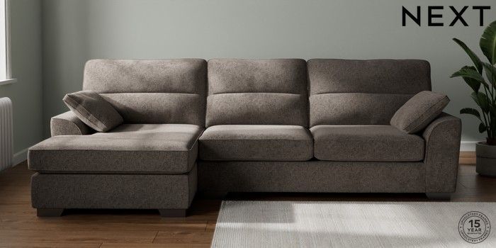 7.2.10 Stamford Highback Large Sofa Chaise - Left Hand Chunky Chenille Mink Brown Large Square Angle - Gunmetal | Made Click here to use our website with more accessibility support, for example screen readers