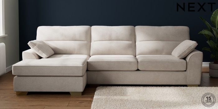 7.2.10 Stamford Highback Large Sofa Chaise - Left Hand Chunky Chenille Oyster Large Square Angle - Brushed Brass | Made Click here to use our website with more accessibility support, for example screen readers