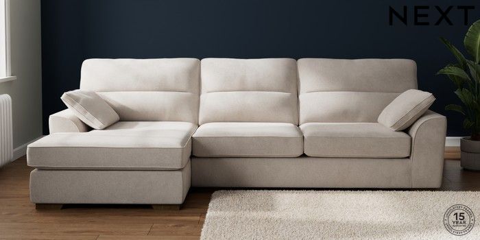 7.2.10 Stamford Highback Large Sofa Chaise - Left Hand Chunky Chenille Oyster Large Square Angle - Mid | Made Click here to use our website with more accessibility support, for example screen readers