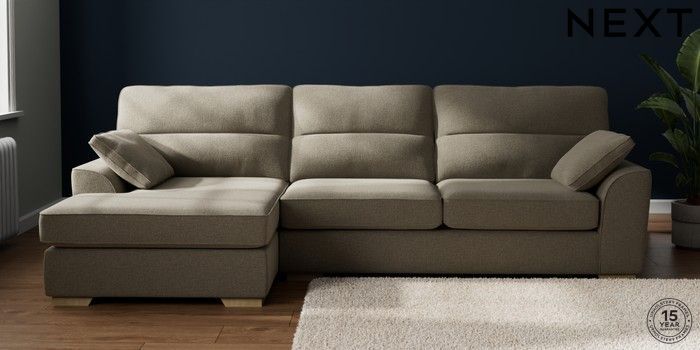 7.2.10 Stamford Highback Large Sofa Chaise - Left Hand Chunky Marl Light Olive Green Large Square Angle - Light | Made Click here to use our website with more accessibility support, for example screen readers