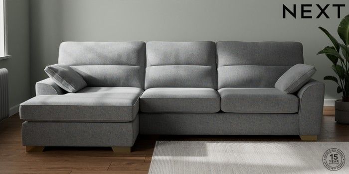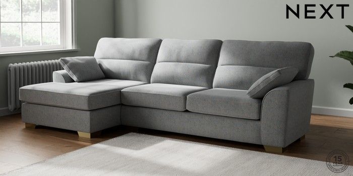 7.2.10 Stamford Highback Large Sofa Chaise - Left Hand Chunky Marl Mid Grey Large Square Angle - Brushed Brass | Made Click here to use our website with more accessibility support, for example screen readers