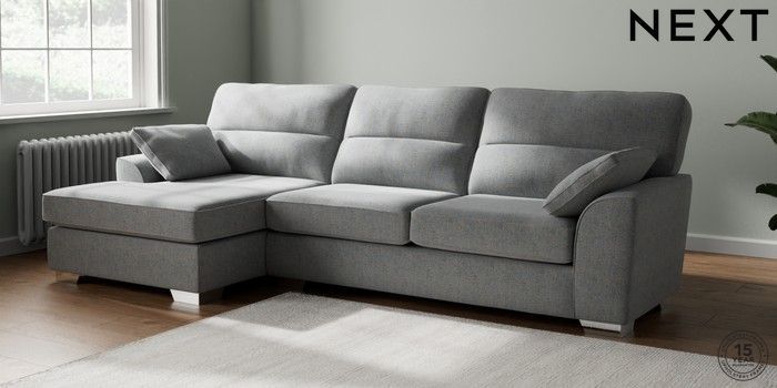 7.2.10 Stamford Highback Large Sofa Chaise - Left Hand Chunky Marl Mid Grey Large Square Angle - Chrome Metal | Made Click here to use our website with more accessibility support, for example screen readers