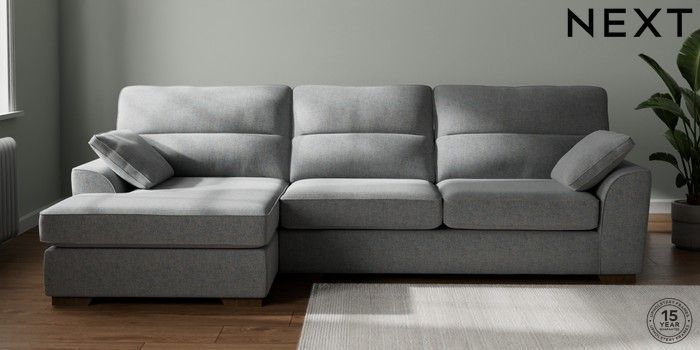 7.2.10 Stamford Highback Large Sofa Chaise - Left Hand Chunky Marl Mid Grey Large Square Angle - Mid | Made Click here to use our website with more accessibility support, for example screen readers