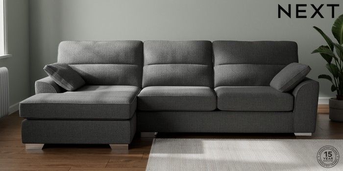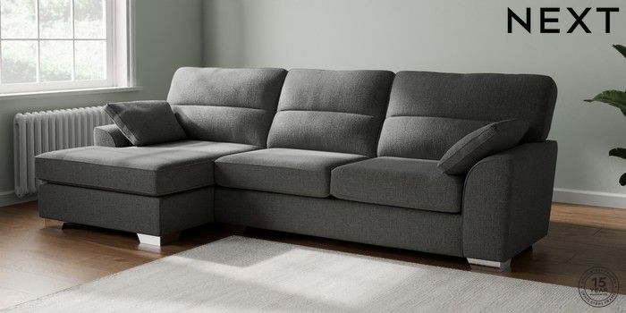 7.2.10 Stamford Highback Large Sofa Chaise - Left Hand Chunky Texture Dark Grey Large Square Angle - Chrome Metal | Made Click here to use our website with more accessibility support, for example screen readers