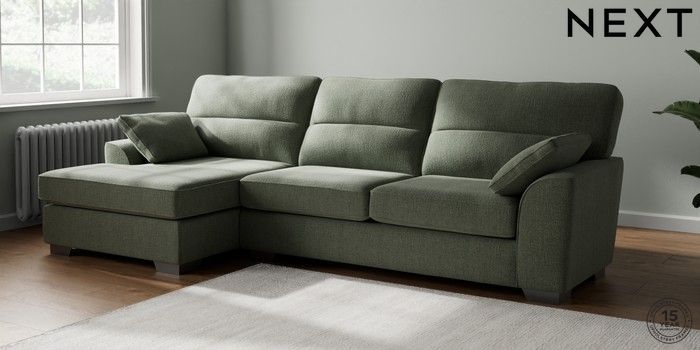 7.2.10 Stamford Highback Large Sofa Chaise - Left Hand Chunky Texture Mid Forest Green Large Square Angle - Gunmetal | Made Click here to use our website with more accessibility support, for example screen readers