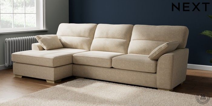 7.2.10 Stamford Highback Large Sofa Chaise - Left Hand Chunky Weave Cream Large Square Angle - Light | Made Click here to use our website with more accessibility support, for example screen readers